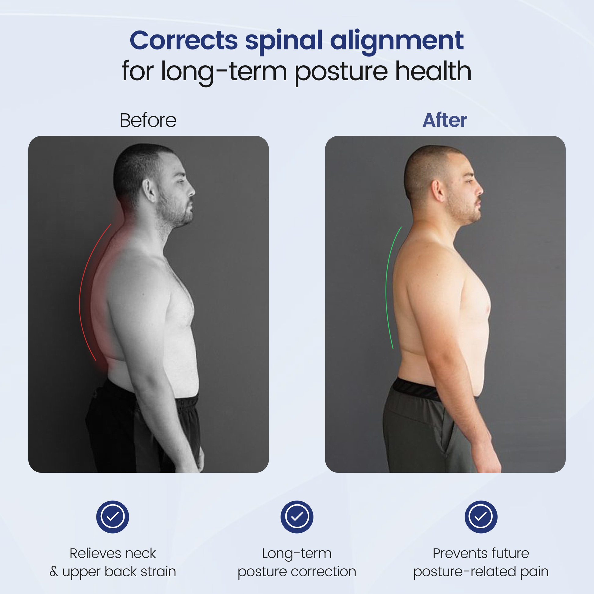Align™ gently pulls the shoulders back and realigns the upper spine, counteracting that tension. Its built-in dual support rods stabilize your posture while helping the weaker muscles strengthen and relearn proper alignment — ensuring long-term correction that lasts even after you take it off.