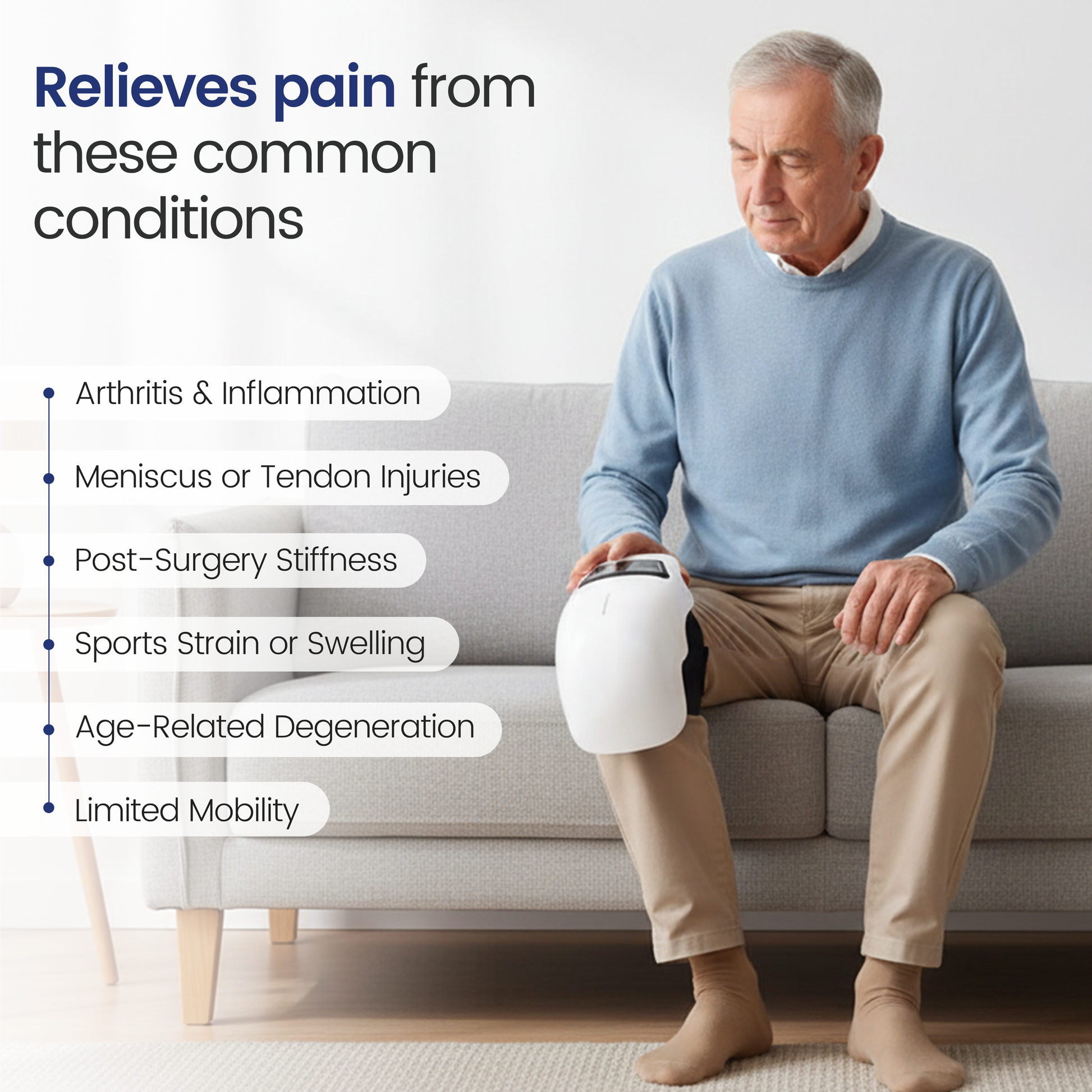 Whether from years of wear, strain, or past injury, Regen™ targets chronic knee pain at the source. Its therapeutic warmth relaxes tight muscles, red light therapy stimulates repair of joint tissues, and rhythmic massage restores circulation — easing persistent discomfort and improving flexibility over time.